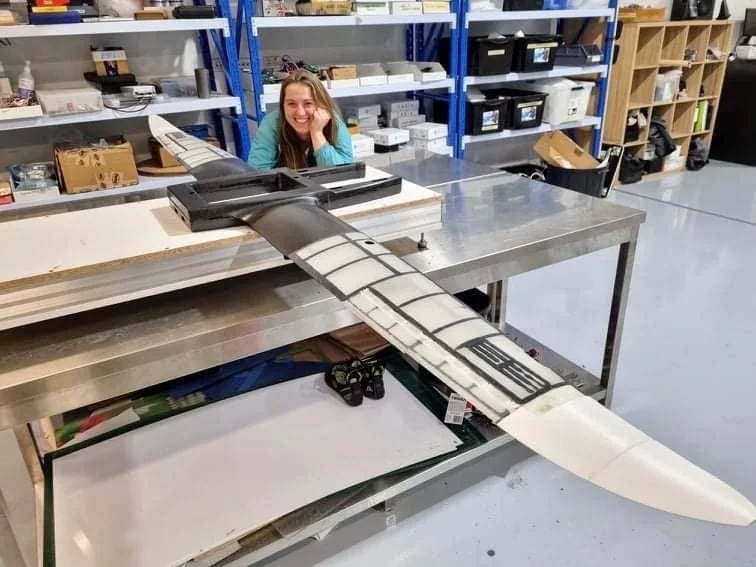 . . . consist of composite skins and 3D printed internal structure. With split ailerons controlled completely internally, this aircraft is able to efficiently stay within 1m of the desired flight path. The profile of these high-aspect-ratio wings has been aerodynamically optimized to the vehicle’s cruise speed.