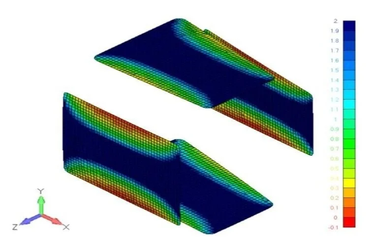 I conducted the test of a representative section of the 11 ft long, carbon fiber composite inlet duct. The purpose of the test was to correlate the physical behavior duct with the predicted stains from the FEM. This was the first structural bench test at Boom Supersonic.